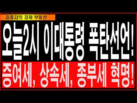 오늘2시 이대통령 폭탄선언! 증여세, 상속세, 종부세 혁명!