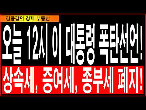 오늘 12시 이 대통령 폭탄선언! 상속세, 증여세, 종부세 폐지!